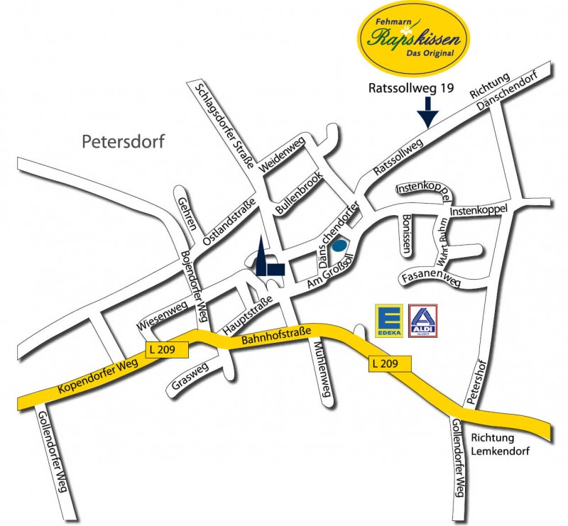 Unseren Direktverkauf finden Sie von Landkirchen her kommend, gleich an der ersten Scheune vor Petersdorf rechts abbiegen und den roten Hinweisschildern folgen.
