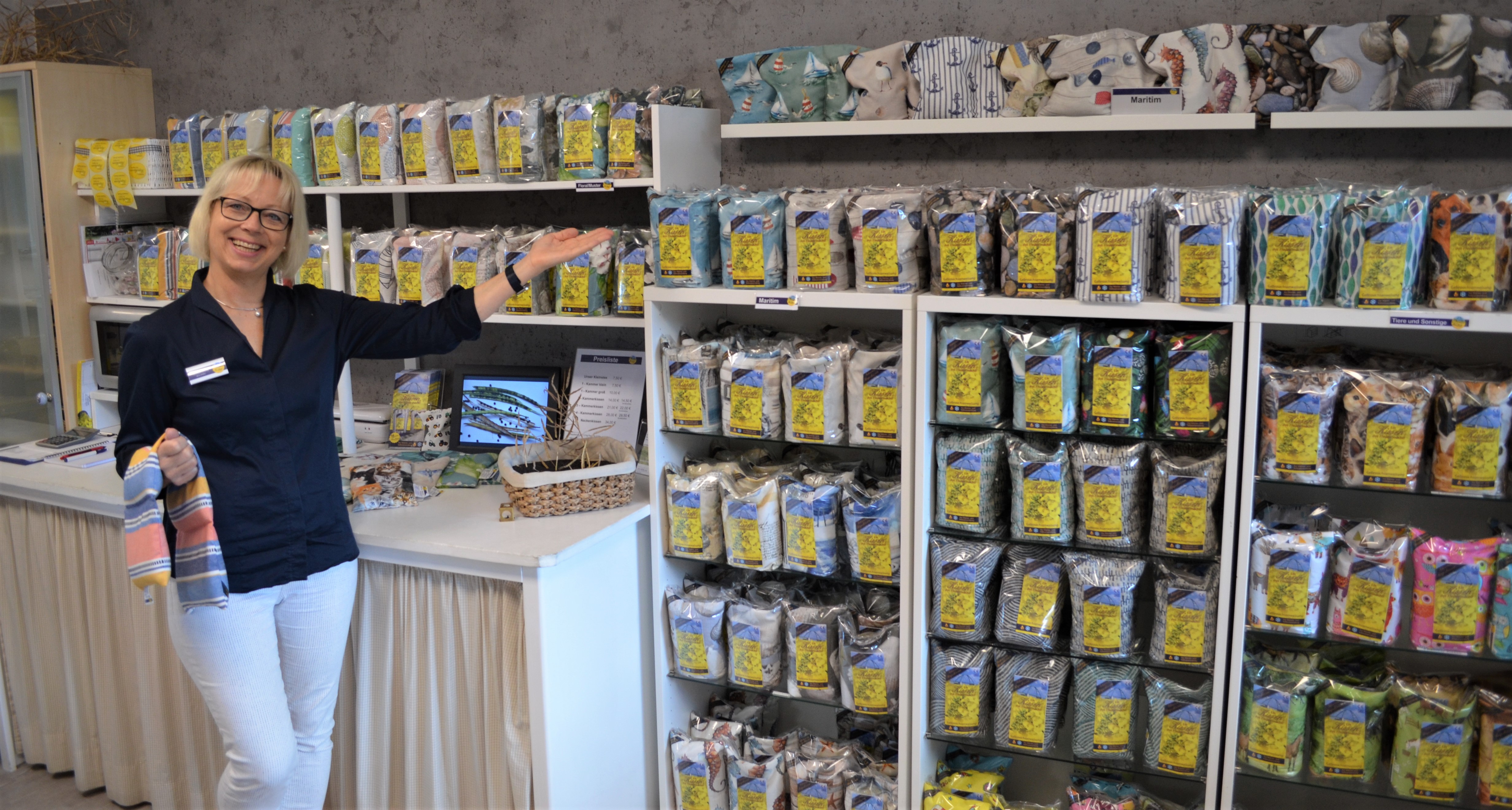 in der Touristenzentrale in Burg und am Südstrand (Eine schöne Auswahl an 3-Kammerkissen mit vorwiegend maritimen Motiven)